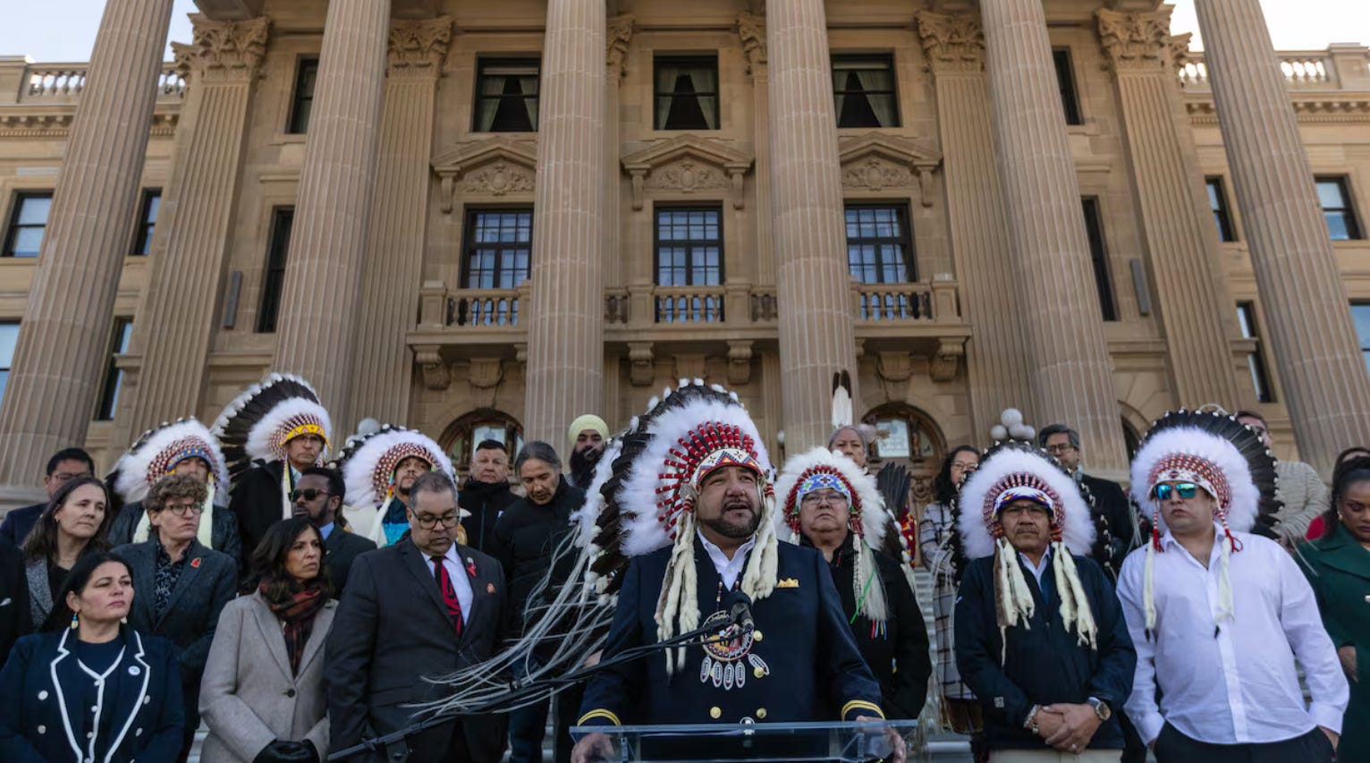 Yesterday at the Alberta Legislature, First Nations chiefs from Treaties 6, 7 and 8 gathered in the gallery to oppose the actions of Danielle Smith and her government.