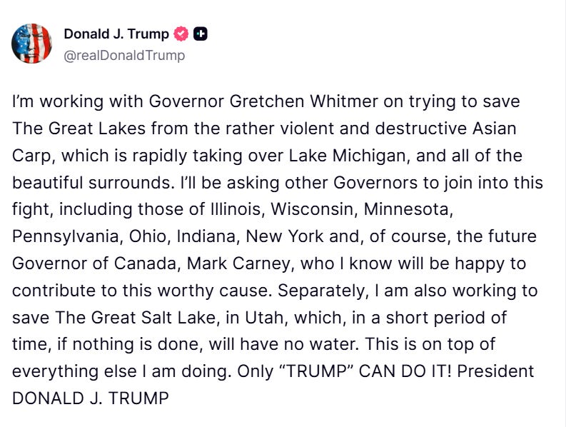 Trump Calls Carney “Future Governor”
